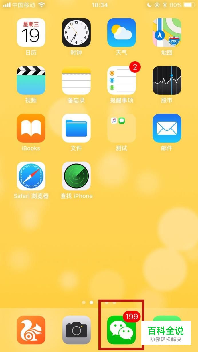 首先在我们的手机桌面上找到微信并点击它,如下图所示。