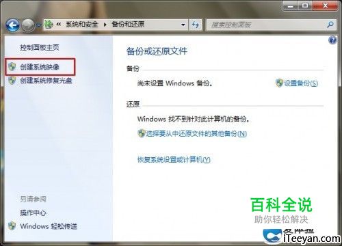 这里打开“创建系统映像” 依次点击“开始”→“控制面板”,在“系统和安全”项中选择“备份您的计算机”,接着在新打开窗口中点击“创建系统映像”。