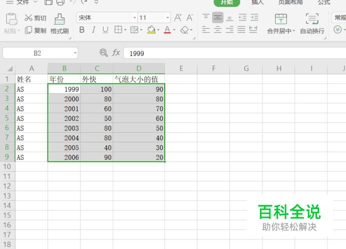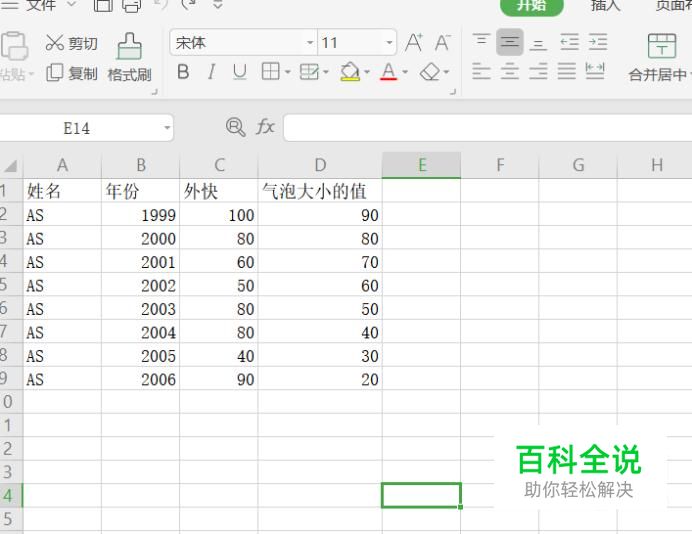 打开一份待统计成气泡图的数据表,数据需要三列,横轴,纵轴和气泡的大小