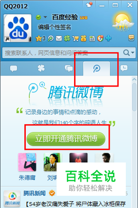 然后我们切换到腾讯微博页面,并点击立即开通腾讯微博按钮,如图所示: