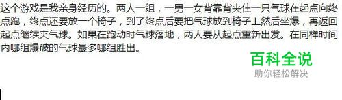 吸管运输 同上一个游戏一样要分出若干人一组,每人嘴里叼一支吸管,第一个人在吸管上放一个有一定重量的钥匙环之类的东西,当比赛开始时,大家不能用手接触吸管和钥匙环,而是用嘴叼吸管的姿势把钥匙环传给下个人,直到传到最后一个人嘴叼的吸管上。 …………