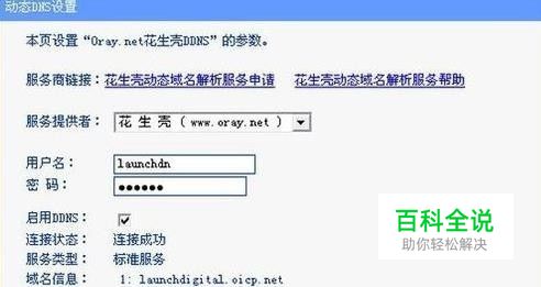 在动态DNS里进行域名绑定的,只要将你申请的用户名和密码输入,然后连接,如果连接成功,则表示绑定成功。