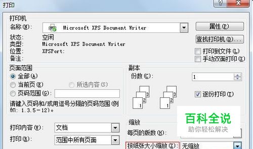 然后再缩放版块中找到按纸张大小缩放一项,选择所需要的类型。