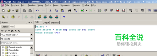 本示例需求是查询薪资前5名的雇员信息,一般情况会想到先按薪资排序,然后取出前5条数据,没错也能实现目标。