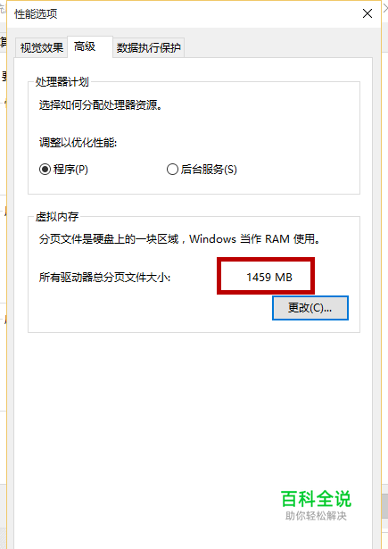 点击“高级”选项,可以看到当前的“虚拟内存”大小。机算机内存实在是不够用的情况下,可以适当更改一下虚拟内存。但是请注意,虚拟内存不是越大越好。一般情况下不要超过物理内存的2倍,否则可能会出现系统运行速度更慢的情况。