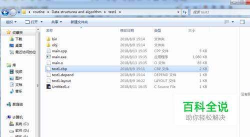 首先,新建一个叫“test1”的工程,如下图所示。 注意其中有一个.cpp文件和.cbp文件。前者是代码文件后者是工程文件。