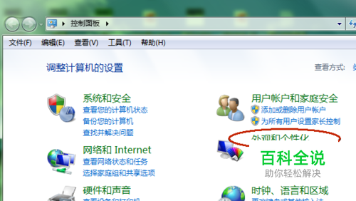 点击外观和个性化以后进入到外观和个性化窗口,在外观和个性化窗口上面点击个性化,如图所示: