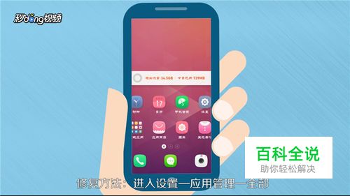 原因一:缓存垃圾太多,修复方法,进入设置,应用管理,全部,找到出现状况的应用程序。 清理数据和缓存。
