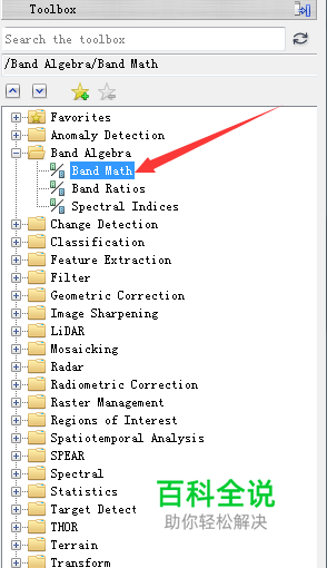 在ENVI软件界面右侧工具箱中找到波段计算工具:Band Algebra/Band Math