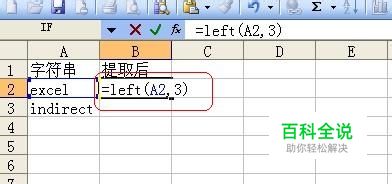 提取从左开始的前3个字符 在b2单元格输入公式:=left(a2,3),回车即可