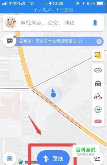 首先,打开高德地图手机app,点击主界面下方的“路线”按钮。