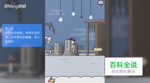 点击右边按钮,来到右边区域,点击黑色的蜘蛛,放入道具栏。