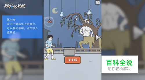 点击小男孩头上的鬼火,可以看到草莓,点击放入道具栏。