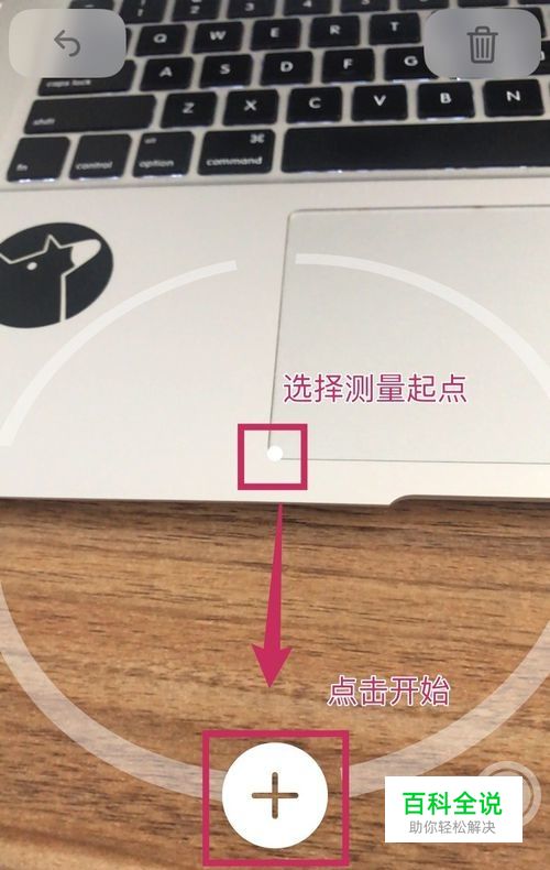 界面中会出现一个圆圈,中间有一个小圆点,将这个点对准你想要测量距离的物体的一端,然后点击【+】添加图标,这个点将作为测量的起点。
