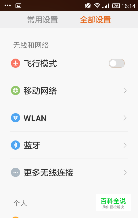 我们看到设置分两个,一个常用设置,一个全部设置