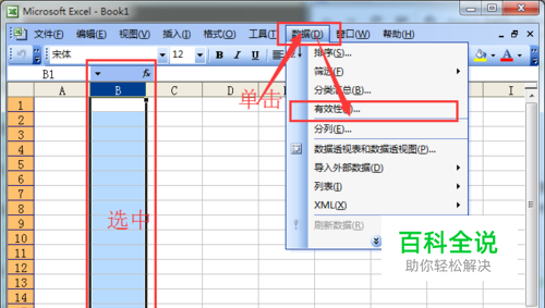 选中,我们要设置的区域。如图 在菜单栏中找到“数据”,在下拉菜单中选中“有效性”