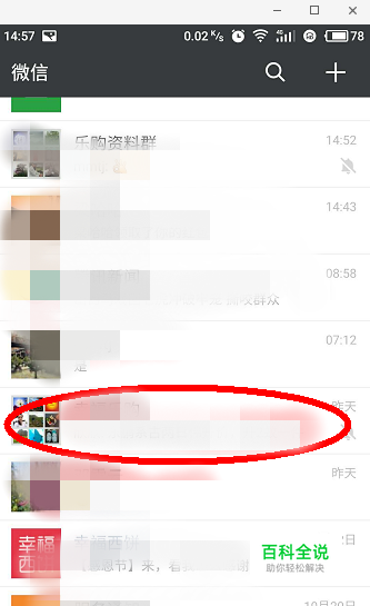 手机登陆微信,进入微信消息页面,找到要查看的微信群的微信群主,如图所示: