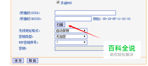 此时将反应“WDS”网桥界面,同时相应的WiFi“SSID”和“BSSID”将自动填写,在此我们只需要输入“密钥”,点击“保存”按钮。