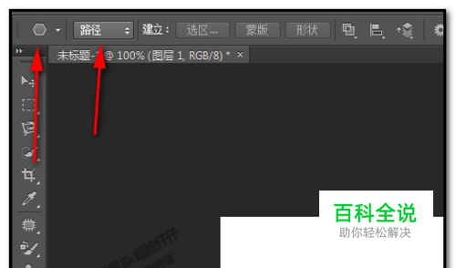 我们用钢笔工具或是形状工具都可以绘制路径。 比如,用形状工具来绘制路径。选取多边形工具,把模式修改为路径。