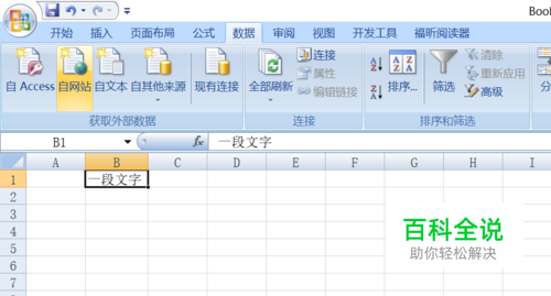 然后我们在任意一个单元格中输入一段文字;