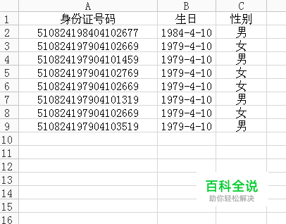 好了,这个在表格中,从身份证号码中提取生日和识别性别的公式就做好了!!