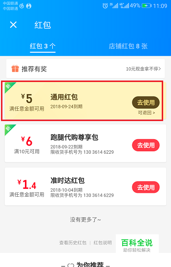 第五步在红包界面中,可以看到我们刚刚兑换的红包,如下图所示: