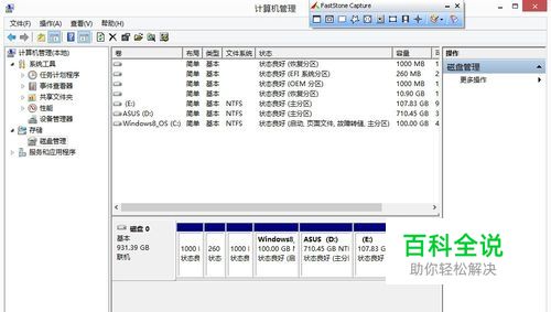 打开“磁盘管理”。不知道如何打开可以,看我的经验---- 华硕笔记本如何进入磁盘管理
