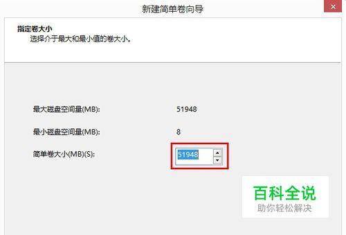 在“简单卷大小”中你可以设置大小。不过我建议选择默认就可以了。点击“下一步”