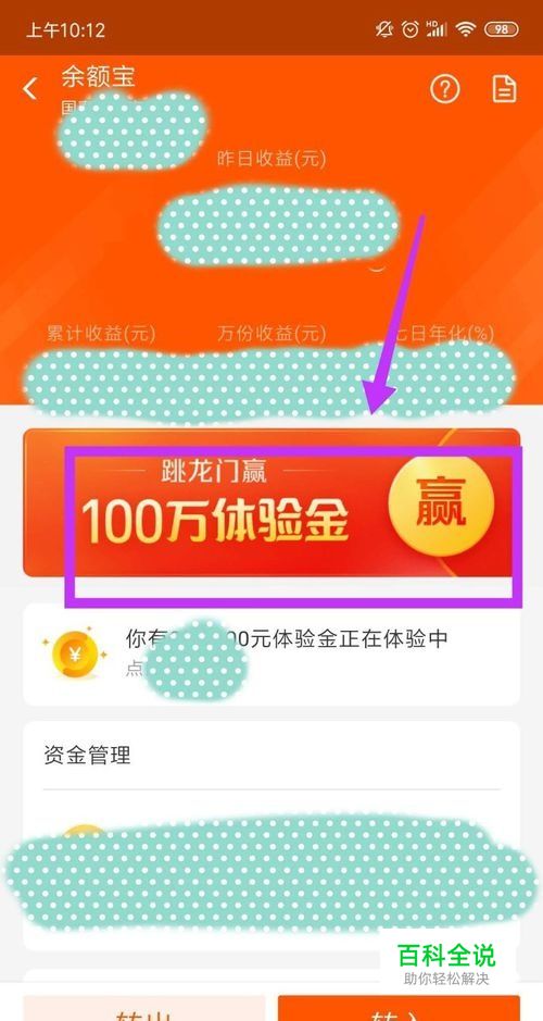 点开支付宝中的余额宝,会看到页面里面有一个“跳龙门赢体验金”的窗口,我们点击一下;