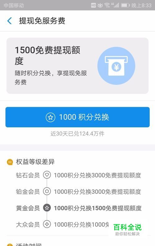 小编是黄金会员,1000积分只能兑换1500额度,上面的两个会员就能够兑换3000额度
