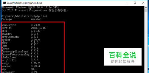 第一步在我们的电脑上打开命令提示符,输入“pip list”,如下图所示: