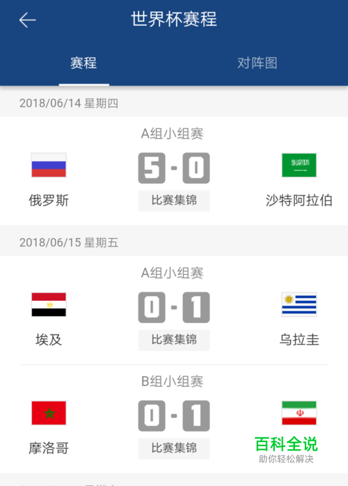 第一步:打开手机,并找到你需要截屏的界面。 例如:2018年俄罗斯世界杯赛事
