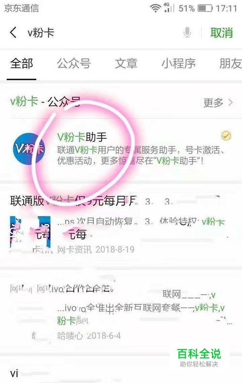 登录并打开微信,搜索微信公众号“V粉卡助手”。
