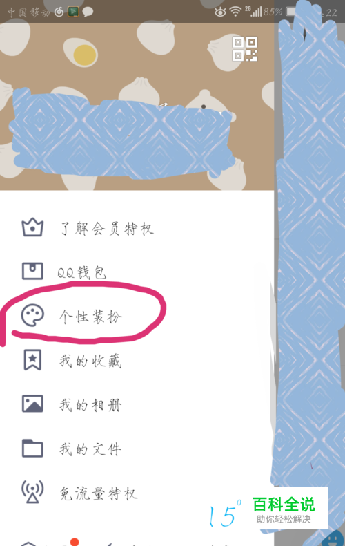 首先,打开qq左侧的“个性装扮”。