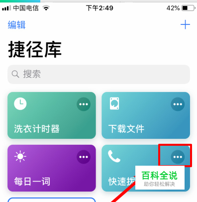 我们打开苹果手机,进入捷径软件,选择需要添加到主屏幕的捷径,点击捷径右上角的三个点的图标。