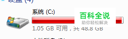 反正我是一直没用到休眠功能,一般最多也只用到睡眠,但是休眠功能的那个HIBERFIL.SYS文件却要占用C盘我2G多的空间,这个每个人的还不样,先看还没关闭休眠功能时的C盘,只有1.05G可用