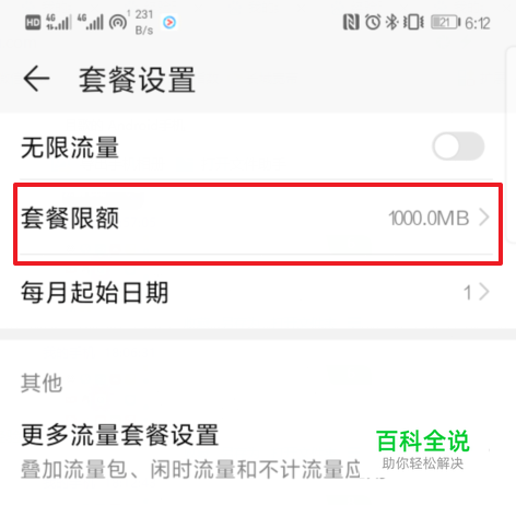 华为手机怎么设置每月流量限额