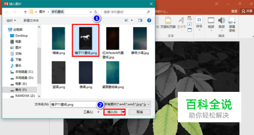 再在打开的对话框中找到含有奔马的图片,将其插入到 PPT 中来。