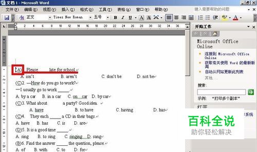 看一下我们试卷中答案的字体。