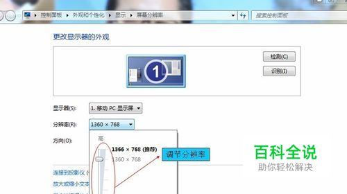 进入调节屏幕分辨率,如图;