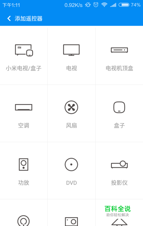 空调比较常用,点击空调后,然后在品牌列表中选择自己家里空调的品牌。