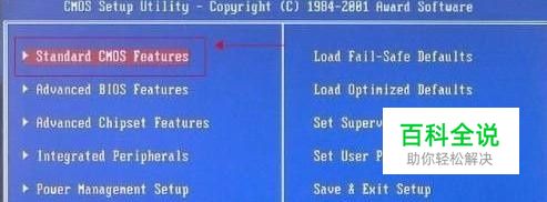 进入BIOS设置,选择“Standard CMOS Features”