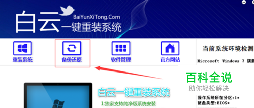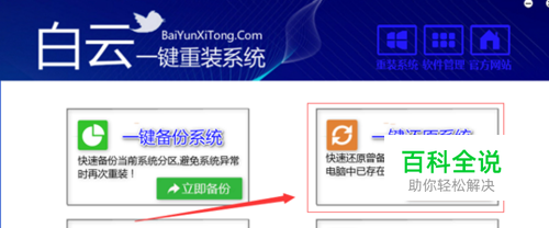 打开白云一键重装系统软件,点击上方的备份还原