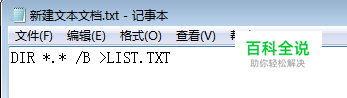 第二步,在记事本文件中输入: DIR *.* /B >LIST.TXT