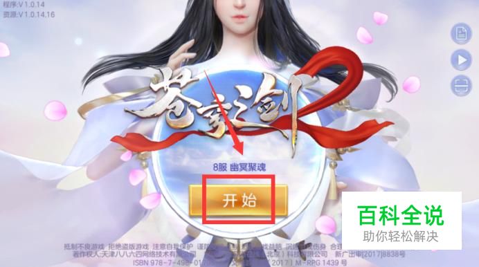 首先选择自己的苍穹之剑2的区,点击“开始”。