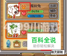 已经跟随在身边的是摇铃兔,但是要想选择愤怒萝卜跟随,就只需直接点击愤怒萝卜,再点击脚印按钮。愤怒萝卜就跟随出来了。