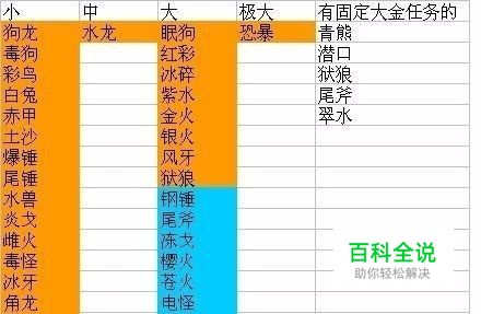 所以结论是: 小金基本是全怪适用(没发现例外) 大金情况比较复杂,大致如下 所以当你刷处于小的位置的怪出了大金时 会出现几种情况: 是大金但对应wiki数据不是大金里的最大size,那么换怪刷大金就别挑上表里处于大和极大的怪来刷了,出的只是大银 是大金而且对应wiki数据是最大的大金,那么你可以尝试去刷处于大的怪,有可能也是大金 同理,处于大的怪出了大金,然后你换刷恐暴也是有可能只出大银的 反之,你一开始就是刷处于大的怪来固定的话,那基本除了恐暴外其余怪都不是问题
