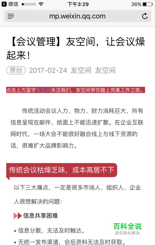 我们在刷微信朋友圈时,看到好的文章总是想要分享给同事,与同事一起探讨,那么如何将优秀的微信文章分享到【友空间】?
