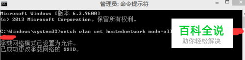 1,右键电脑左下角,选中“命令提示符(管理员)”,以管理员身份打开dos环境: 2,输入命令:netsh wlan set hostednetwork mode=allow ssid=##### key=********** (PS;#是你WiFi的名称,*是你设置的WIFI密码.》然后点击回车,会出现承载网络模式已允许。 ) 3,然后你就会发现WiFi已自动重启,你就可以连WiFi啦!