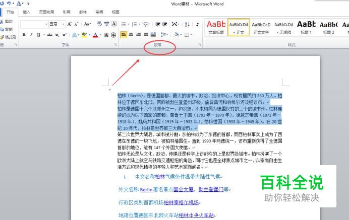 选中需要编辑的段落,在菜单栏中找到“段落”。